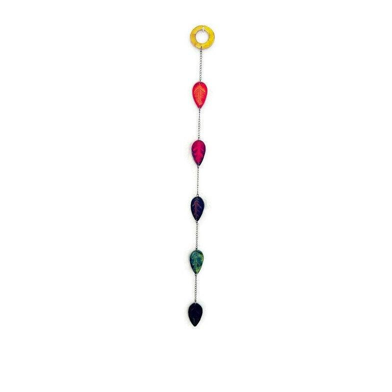 This fall leaf wall hanging was handmade from polymer clay and hand painted with alcohol ink. The colors of the leaves (yellow, orange, red, maroon, olive green and forest green) are arranged in a stunning ombre style.